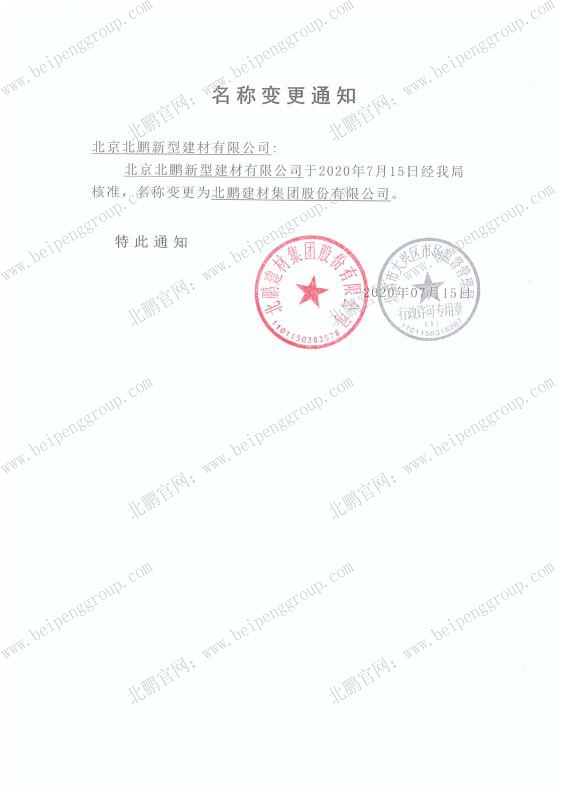 【北京北鵬新型建材有限公司】正式更名為【北鵬建材集團(tuán)股份有限公司】